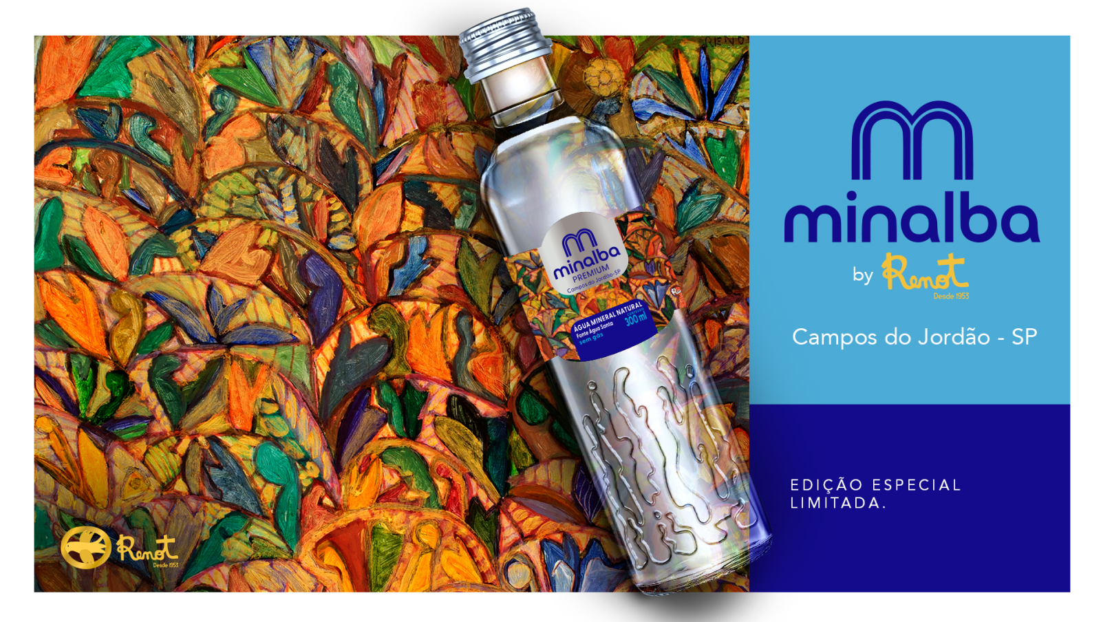 As embalagens de Minalba Renot nasceram do propósito de transformar a água em um gesto de cuidado e impacto social, tendo parte das vendas revertida para iniciativas de apoio à cultura e à comunidade local.